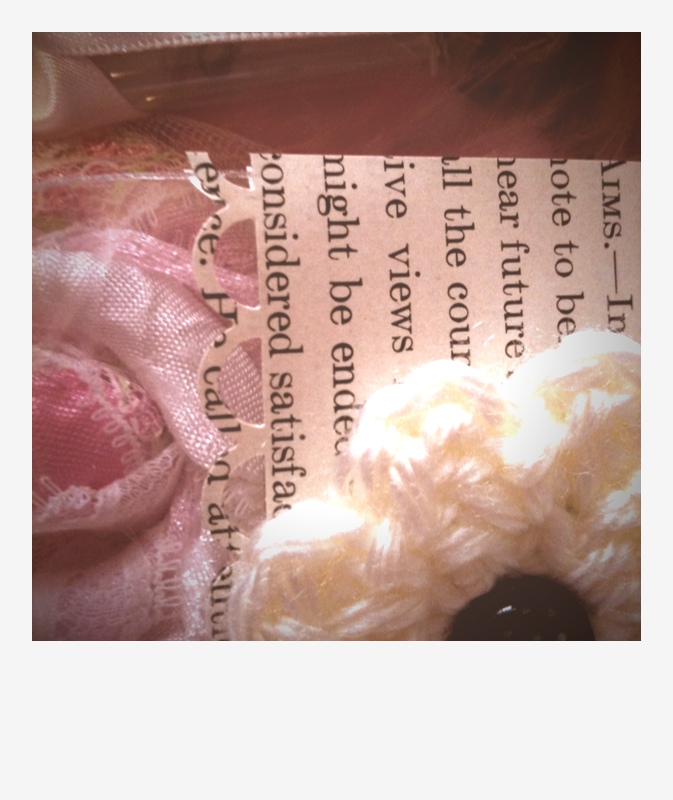 A little sneak peek of what my swap partner will be getting. This is for the Rosette swap over at Gypsy Brocante's blog. I can't wait to see what my swappin' gal thinks of her package. It is full of handmade crochet rosettes, other handmade rosettes, and some exta goodies in a cute pink box to store it all in.
